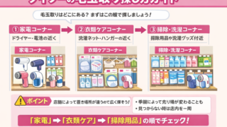 ダイソーの毛玉取りはどこにある?売り場をわかりやすく解説ダイソーの毛玉取りは、主に「家電コーナー」または「衣類ケアコーナー」に置かれていることが多いです。まずは小型家電売り場をチェックし、見つからない場合は洗濯用品や掃除用品の近くを探してみ...