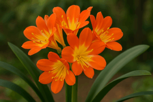 | 君子蘭(クンシラン) | 濃オレンジ・朱色 | 幅広く光沢あり | 房状の小花 | 冬〜春 | ★★★★★ | ◎ |