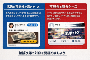 バグではなく広告の可能性が高いケースと、本当に不具合を疑うケース
